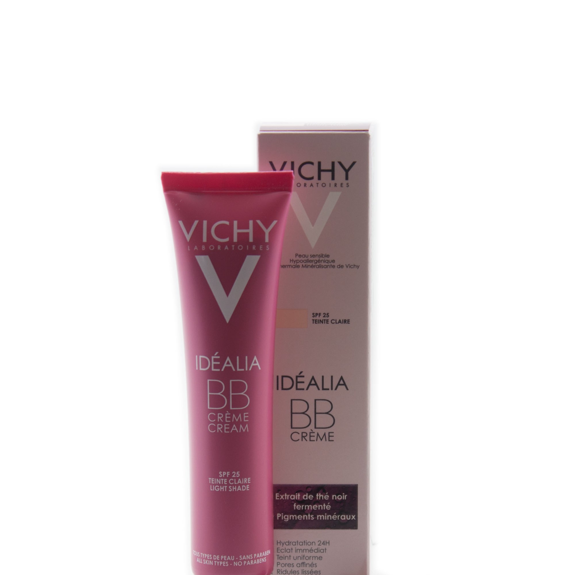 کرم BB ویشی رنگ روشن، درخشان کننده رنگ پوست ، اصلاح کننده بافت پوست ، از بین برنده لک ها و محافظت از پوست در مقابل UVA و UVB با SPF 25 و رطوبت رسانی ۲۴ ساعته از ویژگی های BB کرم ایده الیا ویشی است .