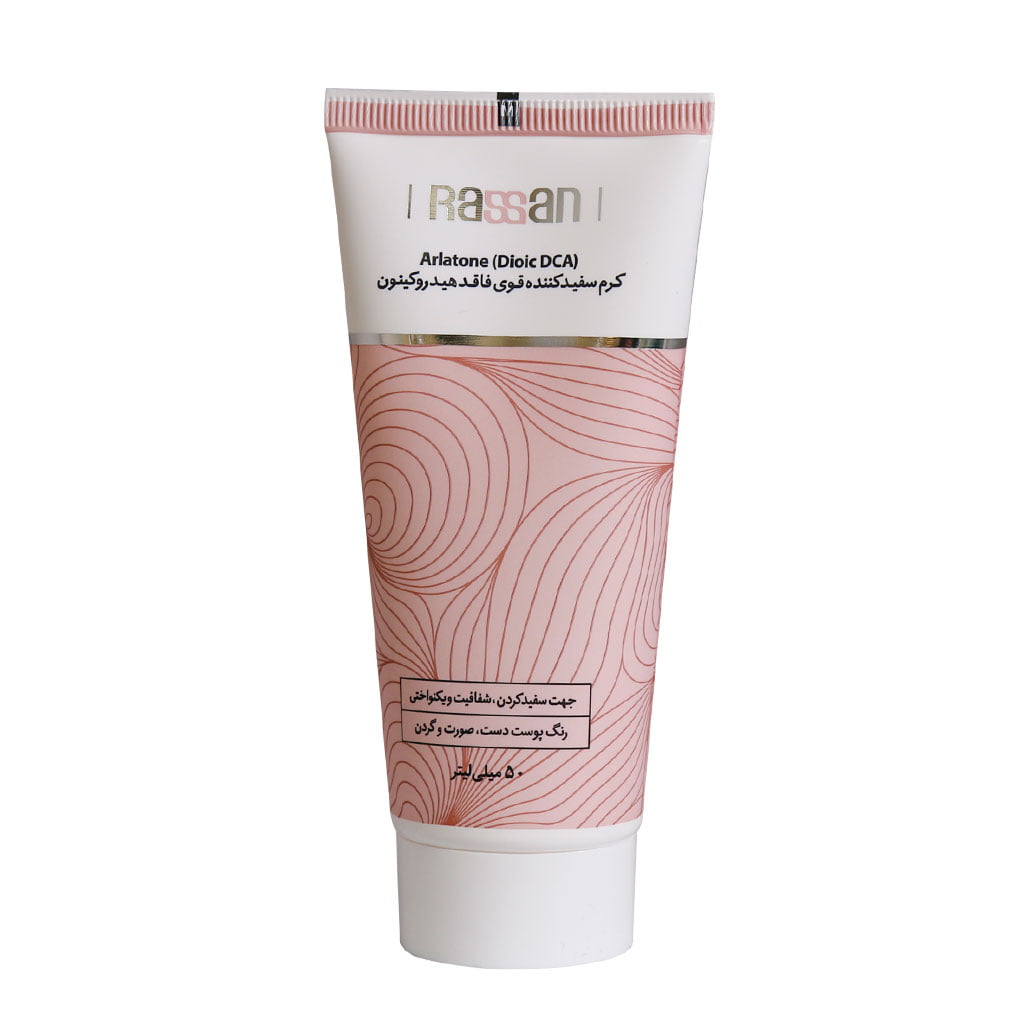 کرم سفید کننده قوی راسن برای سفید کردن، شفاف کردن و یکنواخت نمودن پوست کاربرد دارد. در این محصول از هیدروکینون استفاده نشده است. این کرم حاوی Arlatone (Dioic DCA) مادهای حاصل از اولئیک اسید با منشا گیاهی است. این ماده پس از سالها تحقیق در لابراتوارهای آمریکا و اروپا به عنوان یکی از موثرترین فراوردههای سفید کننده شناخته شده است. به کمک این کرم میتوانید رنگ پوست خود را به خوبی یکنواخت نمایید. برای دست، صورت و گردن خود میتوانید این کرم را استفاده کنید. این کرم ضد لک ضد چین و چروک و تیرگیهای پوست است.