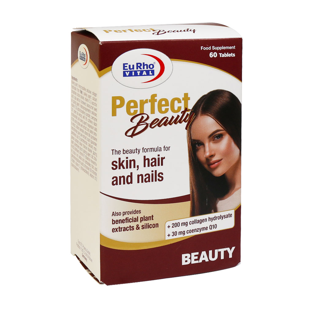 مجموعه‌ای کامل از مواد مغذی که به حفظ سلامت پوست، مو و ناخن کمک می‌کنند در قرص پرفکت بیوتی یوروویتال می‌توانید بیابید. این محصول حاوی عصاره‌های گیاهی بوده و ذخایر آنتی اکسیدانی بدن را جهت مبارزه با رادیکال‌‌های آزاد افزایش می‌دهد. وجود کلاژن دریایی در این قرص موجب می‌شود تا به کلاژن‌سازی طبیعی پوست و بافت پیوندی کمک کرده و در نتیجه از پیری پوست ممانعت به عمل آید. در هر وعده روزانه از این محصول ۲۰۰ میلی‌گرم کلاژن را می‌توانید بیابید. تقویت رشد موها، پیشگیری از ریزش مو و کمک به استحکام ناخن‌ها نیز از دیگر مزایای مصرف این محصول است و می‌توان آن را بهترین قرص تقویت مو و ناخن برشمرد.